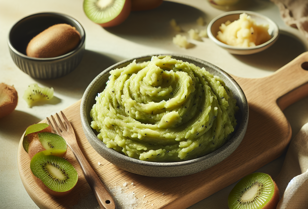 Uma deliciosa e saudável receita de kiwi bem maduro amassado, perfeita para crianças de todas as idades. O kiwi é uma fruta rica em vitamina C, fibras e antioxidantes, sendo ótimo para a saúde do sistema imunológico e digestivo. Este prato é rápido de preparar, ideal para um lanche ou sobremesa. Acompanhe com granola, iogurte ou até mesmo adicione pedacinhos de banana para mais sabor e textura.