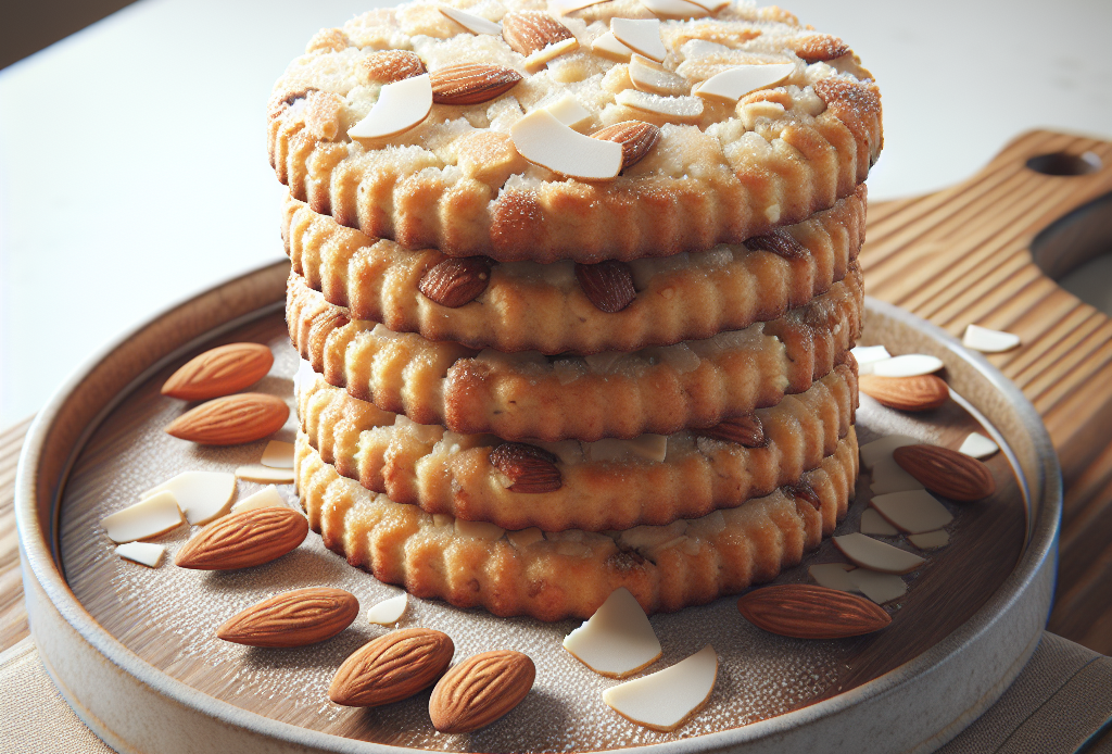 Deliciosos cookies de coco com amêndoas trituradas, perfeitos para um lanche saudável e nutritivo para as crianças. Feitos com ingredientes naturais e sem adição de açúcar refinado, esses cookies são ricos em fibras, proteínas e gorduras saudáveis. O tempo de preparo é rápido e o rendimento é de aproximadamente 12 cookies. Acompanhe com um copo de leite ou uma xícara de chá para uma combinação perfeita.