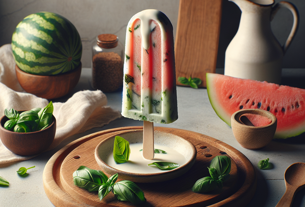 Refrescante e saudável, este sorvete de melancia e manjericão é perfeito para os dias quentes de verão. A combinação da doçura da melancia com o toque aromático do manjericão resulta em um picolé delicioso e nutritivo. Além disso, a melancia é rica em vitaminas A e C, enquanto o manjericão possui propriedades anti-inflamatórias. O tempo de preparo é rápido, ideal para uma sobremesa de última hora. Sirva este sorvete como uma opção refrescante e saudável para as crianças.