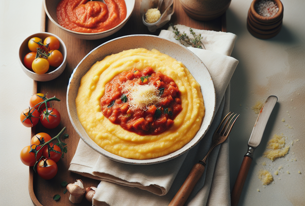 Esta receita de polenta cremosa com molho de tomate caseiro é uma opção saudável e saborosa para crianças de todas as idades. Feita com ingredientes simples e nutritivos, como fubá, tomate, cebola e alho, esta refeição é rica em fibras, vitaminas e minerais essenciais para o crescimento e desenvolvimento das crianças. O tempo de preparo é rápido, perfeito para os dias corridos da semana, e o rendimento é de aproximadamente 4 porções. Para acompanhar, sugerimos legumes grelhados ou uma salada verde fresca.