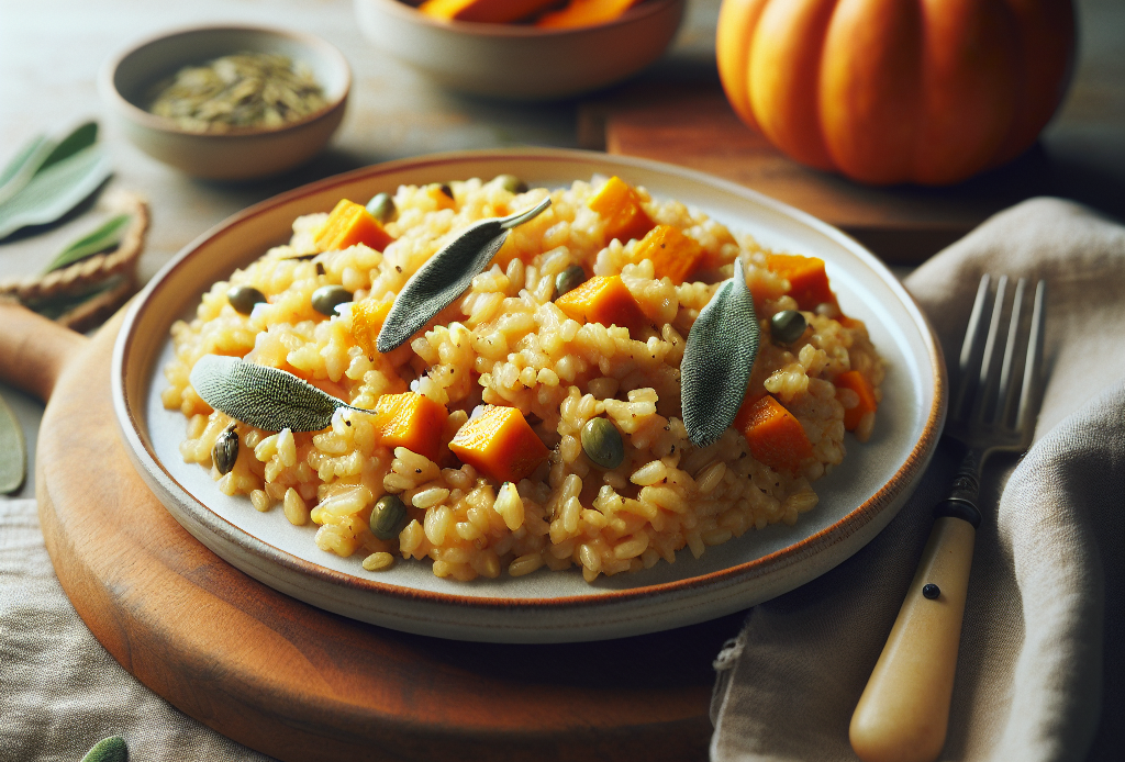 Este delicioso risoto combina a suavidade do arroz integral com a doçura da abóbora e o aroma marcante da sálvia. Rico em fibras, vitaminas e minerais, é uma opção saudável e nutritiva para as refeições das crianças. O tempo de preparo é rápido e o rendimento é de aproximadamente 4 porções. Para acompanhar, sugerimos uma salada colorida de folhas verdes.