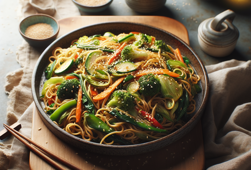 Delicioso yakisoba de legumes com macarrão de arroz e gergelim, perfeito para crianças de todas as idades. Esta receita saudável é rica em vegetais coloridos, proporcionando uma variedade de nutrientes essenciais. O tempo de preparo é rápido, ideal para uma refeição prática e nutritiva. O yakisoba pode ser servido como prato principal em almoços ou jantares. Acompanhe com um suco natural ou chá gelado para uma refeição completa e equilibrada.